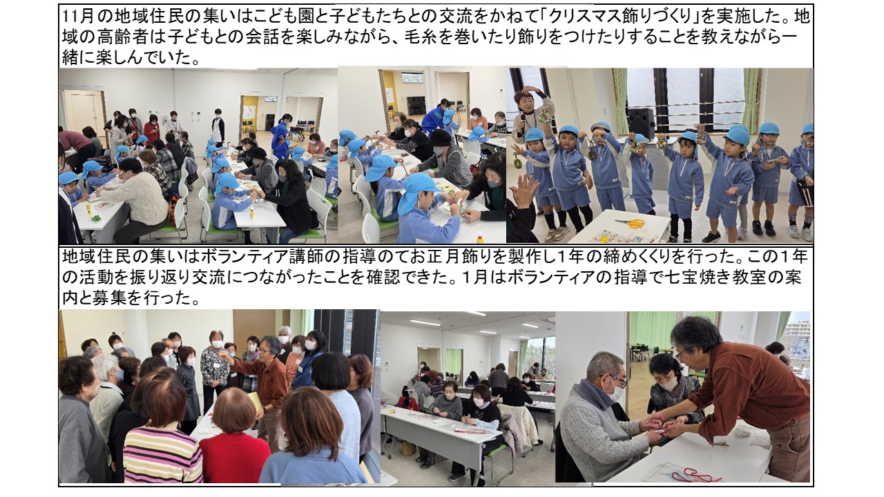 飯倉駅前の地域交流センターナザレの里にて地域住民を対象の集いの場として、毎回20~30名の皆さんとボランティアとが作品をつくりながら交流しています。